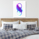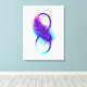 Infinity symbol with a beautiful feather painted in purple and blue bright colours on white background.