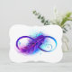 Infinity symbol with a beautiful feather painted in purple and blue bright colours on white background.