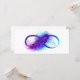 Infinity symbol with a beautiful feather painted in purple and blue bright colors on white background.