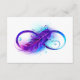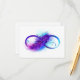 Infinity symbol with a beautiful feather painted in purple and blue bright colours on white background.