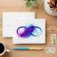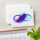 Infinity symbol with a beautiful feather painted in purple and blue bright colours on white background.