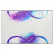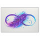 Infinity symbol with a beautiful feather painted in purple and blue bright colours on white background.