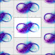 Infinity symbol with a beautiful feather painted in purple and blue bright colours on white background.
