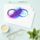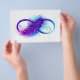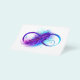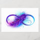 Infinity symbol with a beautiful feather painted in purple and blue bright colours on white background.