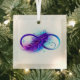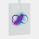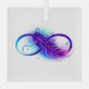 Infinity symbol with a beautiful feather painted in purple and blue bright colours on white background.