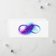 Infinity symbol with a beautiful feather painted in purple and blue bright colours on white background.