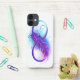 Infinity symbol with a beautiful feather painted in purple and blue bright colours on white background.