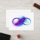 Infinity symbol with a beautiful feather painted in purple and blue bright colours on white background.