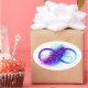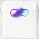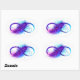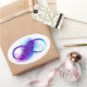 Infinity symbol with a beautiful feather painted in purple and blue bright colours on white background.