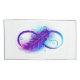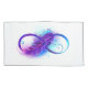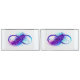 Infinity symbol with a beautiful feather painted in purple and blue bright colours on white background.