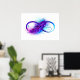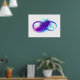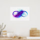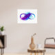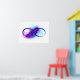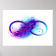 Infinity symbol with a beautiful feather painted in purple and blue bright colours on white background.