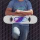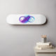 Infinity symbol with a beautiful feather painted in purple and blue bright colours on white background.