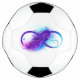Infinity symbol with a beautiful feather painted in purple and blue bright colors on white background.