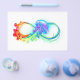 Multicolor infinity symbol with rainbow bright jellyfish decorated with long tentacles on white background. Rainbow jellyfish.