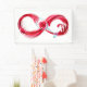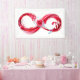 Infinity symbol of continuous stream of red wine pouring into glass wine glass on white background.