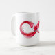 Infinity symbol of continuous stream of red wine pouring into glass wine glass on white background.