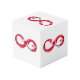 Infinity symbol of continuous stream of red wine pouring into glass wine glass on white background.