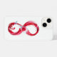 Infinity symbol of continuous stream of red wine pouring into glass wine glass on white background.
