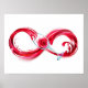 Infinity symbol of continuous stream of red wine pouring into glass wine glass on white background.