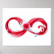 Infinity symbol of continuous stream of red wine pouring into glass wine glass on white background.