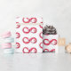 Infinity symbol of continuous stream of red wine pouring into glass wine glass on white background.
