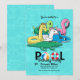 A summer-theme invitation perfect for a pool party for the "young set". It features pool toys in the form of a giraffe, unicorn, turtle, flamingo, shark and alligator. (<a href='http://www.freepik.com/free-vector/inflatable-animal-pool-toys_894996.htm'>Designed by Freepik</a>). <br/><br/>The card is easy to customise with your wording, font, font colour and choice of six paper types.<br/><br/>Not exactly what you're looking for? All our products can be custom designed to meet your needs at no extra charge.<br/><br/>Simply contact us at askcottonlamb@gmail.com<br/><br/>Coordinating products available: