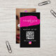 A beautifully designed black and pink business card that includes your full photo and your own custom photo as well as your name, title, QR code and social media handle. Perfect for social media influencers. Simply customise and make it your own!