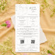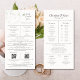 This design is a wedding program infographic in a clean, black and white palette with a modern, minimalist aesthetic. The typography combines elegant serif and simple sans serif fonts, giving it a fresh, contemporary look. The layout clearly organises details like the love story, fun facts, and ways to share memories, making it easy to read and visually appealing. It’s a perfect modern wedding program for couples who want custom wedding programs with a timeless, minimalist style