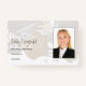 An informal style photo ID badge with the small feminine business in mind or an independent emotional support or care worker. The background has a modern abstract pattern in soft creams and grey, and you can easily swap in your photo (of portrait orientation) and change the text to your own details. You can also add your return address on the back in case your card gets lost or delete this text if you so wish.