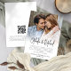 Photo Overlay Informal Script QR Code Boho Wedding. Printable or printed. Bohemian vibes for this fully customisable design! Change text as required and replace the sample photo with your own favourite and personalise the rest of the text. With a QR code to your wedding website on the back so your guests can easily visit your wedding website. Your QR code will be automatically generated to update the sample code in the design, when you simply change the sample URL in the template with your own wedding website URL