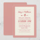 This modern wedding invitation design features informal dusky pink typography with an arrow and heart motif on a cream background. See entire collection for matching items.