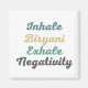 Spice up your fridge with these "Inhale Biryani Exhale Negativity" magnets! These colourful and fun magnets are the perfect addition to any kitchen, adding a touch of humour and positivity to your daily routine. Whether you're a fan of biryani or just love to try new dishes, these magnets are sure to bring a smile to your face every time you see them. Each magnet features the words "Inhale Biryani Exhale Negativity" in bold, eye-catching letters, in a playful script font. The design is printed on high-quality, durable magnets that are easy to stick on any magnetic surface. Get yours today and let the positive vibes flow!