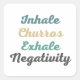 Bring a smile to your face every time you see these colourful "Inhale Churros Exhale Negativity" stickers! These fun and quirky stickers feature the phrase "Inhale Churros Exhale Negativity" in playful lettering. They're perfect for adding a pop of personality to your laptop, phone case, notebook, or even your car. These stickers are printed on high-quality vinyl and are durable enough to withstand the elements, so you can enjoy them for years to come. Get a set of these stickers and share the churro love with your friends and family!