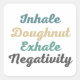 Sweet up your life and spread positivity with these "Inhale Doughnut Exhale Negativity" stickers! Featuring a bold, inspiring typography, these stickers are perfect for adding some personality to your notebook, laptop, water bottle, or anything in between. Each sticker is made from durable vinyl material and has a smooth, non-glossy finish that resists water, sunlight, and scratches, so you can enjoy them for years to come. Whether you're a fan of doughnut or just want to remind yourself and others to let go of negativity, these stickers are a fun and uplifting addition to any collection.