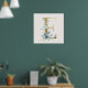 Initial E Golden and Blue Floral Monogram Poster