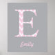 This Pink and Grey Personalised Chevron Monogramed Name Poster can be Personalised with the first "E" Initial of your name or your child's name.