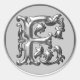 Initial F Round Sticker in Silver