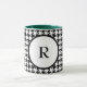 A classic black and white houndstooth pattern, with single initial, on this combo colour beverage mug. Choose from 9 colours for handle and inside. Easily change initial using the Template provided. Also available in 15-ounce with five colours to choose. Makes a perfect gift for family, friend, boss, teacher or gift yourself. See "About This Product" at side for more information.