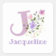 Initial J Plus Name Jacqueline & Flowers Design Square Sticker