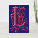 The letter L in an ornate font, in brilliant fuschia on darkest blue. If you're looking for a one-of-a-kind monogrammed greeting card, notecard or postcard, you'll love this one. Envelopes are included with with greeting and notecards (no envelopes with postcards). Blank inside. Buy in bulk to save.