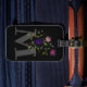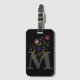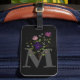 Design features Monogram plus Flowers in a Floral Design. Initial is the letter M. Black Luggage Tag.
