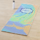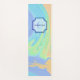 One side of this yoga mat features a multicolor paint swirl of pale peach, blue, purple, and green with a placeholder for name and initial letter centred on the front of the mat. Fill in the template text field and initial letter with your information.