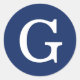 Initial Letter Monogram Blue White Plain Simple Classic Round Sticker