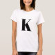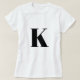 Simple, stylish custom initial letter monogram women's t-shirt in modern minimalist typography in black. A perfect custom gift or fashion accessory with a personal touch!