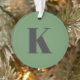 Simple, stylish custom initial letter monogram holiday ornament in modern minimalist typography in dark grey on sage green. A perfect custom gift or xmas home accessory with a personal touch!