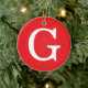 Initial Letter Monogram Red White Plain Simple Ceramic Tree Decoration