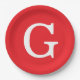 Initial Letter Monogram Red White Plain Simple Paper Plate