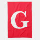 Initial Letter Monogram Red White Plain Simple Tea Towel