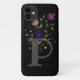 Design features Monogram plus Flowers in a Floral Design. Initial is the letter P. Black Phone case.