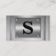 A cool metal surface chrome look modern business card including four screws on the corners of the framed metallic steel plate give this a 3d look that shines and stands out among the others. Easily customise with your own monogram, initial, initials, or name. The letter S is shown. Printed on paper, not actual metal. The perfect professional looking card especially for skilled trades such as industrial, construction, building, machinists, or automotive occupations. Great for artists and designers as well as teachers and students too!